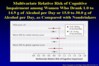 established, but the effect of moderate consumption is uncertain. METHODS: Between 1995 and 2001, we evaluated cognitive function in 12,480 participants in the Nurses' Health Study who were 70 to 81 years old, with follow-up assessments in 11,102 two years later. The level of alcohol consumption was ascertained regularly beginning in 1980. We calculated multivariate-adjusted mean cognitive scores and multivariate-adjusted risks of cognitive impairment (defined as the lowest 10 percent of the scores) and a substantial decline in cognitive function over time (defined as a change that was in the worst 10 percent of the distribution of the decline). We also stratified analyses according to the apolipoprotein E genotype in a subgroup of women. RESULTS: After multivariate adjustment, moderate drinkers (those who consumed less than 15.0 g of alcohol per day [about one drink]) had better mean cognitive scores than nondrinkers. Among moderate drinkers, as compared with nondrinkers, the relative risk of impairment was 0.77 on our test of general cognition (95 percent confidence interval, 0.67 to 0.88) and 0.81 on the basis of a global cognitive score combining the results of all tests (95 percent confidence interval, 0.70 to 0.93). The results for cognitive decline were similar; for example, on our test of general cognition, the relative risk of a substantial decline in performance over a two-year period was 0.85 (95 percent confidence interval, 0.74 to 0.98) among moderate drinkers, as compared with nondrinkers. There were no significant associations between higher levels of drinking (15.0 to 30.0 g per day) and the risk of cognitive impairment or decline. There were no significant differences in risks according to the beverage (e.g., wine or beer) and no interaction with the apolipoprotein E genotype. CONCLUSIONS: Our data suggest that in women, up to one drink per day does not impair cognitive function and may actually decrease the risk of cognitive decline. |