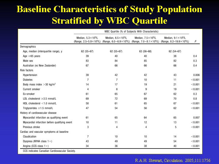 or unstable angina. An increase in baseline WBC was associated with greater