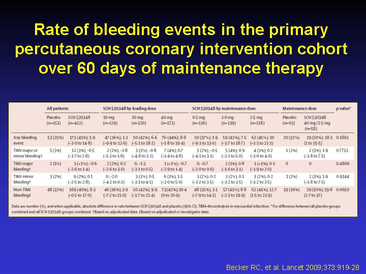 Safety and tolerability of SCH 530348 in patients undergoing non-urgent percutaneous coronary intervention: a randomised, double-blind, placebo-controlled phase II study |